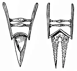 - ↑ George Cameron Stone: A glossary of the construction, decoration, and use of arms and armor in all countries and in all times together with some closely related subjects. Dover Publications, Mineola NY 1999, ISBN 0-486-40726-8, S. 344–347 (englisch).