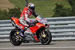 2016 konnte Ducati mit Andrea Iannone beim Großen Preis von Österreich in Spielberg[6] nach sechs Jahren wieder einen Sieg feiern (sowie den ersten Doppelsieg seit knapp neun Jahren, da Dovizioso Zweiter wurde). Des Weiteren sorgte eine von Iannone verschuldete Kollision der Teamkollegen in Argentinien[7] für Aufregung. Im weiteren Saisonverlauf gewann auch Dovizioso mit dem Sieg beim Großen Preis von Malaysia ein Rennen, was seinen ersten Sieg seit sieben Jahren darstellte.