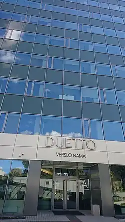 Duetto ist ein Komplex (Business Center) aus zwei identischen Bürogebäuden mit 10 Stockwerken im Stadtteil Viršuliškės der litauischen Hauptstadt Vilnius.[1] Das erste Gebäude wird als „Duetto I“ (A) und das zweite als „Duetto II“ (B) bezeichnet. Die Fläche eines Stockwerks beträgt ~1668,00 m². Beide Gebäude verfügen über vier Tiefgaragenebenen und einen Überbau für technische Einrichtungen. Daneben gibt es ein anderes Bürogebäude „Grand Office“ und das Wohnhaus „Solo City“ auf dem sog. urbanistischen Hügel von Vilnius.