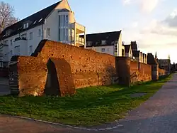 Die Duisburger Altstadt war von einer Stadtmauer umgeben, die heute noch in Teilen erhalten ist oder zum Teil rekonstruiert wurde. Die Stadtmauer umfasste ein Gebiet von etwa 32 Hektar, auf dem im 16. Jahrhundert etwa 2000 bis 3000 Menschen lebten. Die Stadtmauer ist der Nachwelt bekannt aus der Zeichnung des Stadtplans von Johannes Corputius. Die Mauer war einst 2,5 km lang. Viele Teile der Stadtmauer blieben bis zum Zweiten Weltkrieg bestehen: Man benutzte sie bald als Rückwand für viele Bürgerhäuser. Nach dem Zweiten Weltkrieg waren von ihr noch 80 Prozent erhalten. Heute sind es lediglich 26 Prozent. Diese 670 Meter Stadtmauer sind nach Angaben der Duisburger Stadtverwaltung die „älteste in derartigem Umfang erhaltene steinerne mittelalterliche Stadtmauer im deutschen Sprachraum“.