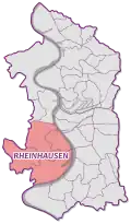 Rheinhausen, bis 1974 eine gleichnamige, kreisangehörige Stadt des Kreises Moers, ist durch das Ruhrgebiet-Gesetz seit dem 1. Januar 1975 ein Bezirk der Stadt Duisburg mit 79.089 Einwohnern (Stand: 31. Dezember 2023) und einer Fläche von 38,68 km².