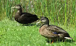Die Dunkelente (Anas rubripes) ist eine nordamerikanische Art aus der Familie der Entenvögel. Sie stellt eine Ausnahme innerhalb der Eigentlichen Enten dar, weil sie keinen Geschlechtsdimorphismus aufweist. Beide Geschlechter ähneln in ihrem Erscheinungsbild den Weibchen der Stockente. Sie sind allerdings insgesamt etwas dunkler gefärbt und haben auffallend helle Wangen und Halsseiten. Gelegentlich wird sie wegen ihrer vielen Gemeinsamkeiten mit der Stockente auch nur als Unterart dieser Art eingeordnet.[1] Untersuchungen an 58.000 geschossenen Tieren beider Arten ergaben jedoch nur 318 intermediäre Bastarde. Heute dringt die Stockente jedoch zunehmend in die traditionellen Verbreitungsgebiete der Dunkelente ein, wodurch der Hybridanteil steigt.[2]