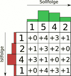 Mithilfe einer Gewichtungsfunktion für die einzelnen Parameter jedes Wertetupels kann ein Differenzmaß zwischen zwei beliebigen Werten der beiden Signale aufgestellt werden (Kostenfunktion), beispielsweise eine normalisierte euklidische Distanz oder die Mahalanobis-Distanz.[5]