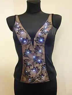 - ↑ „E-Broidery“ – die Symbiose von Licht und Textilien. 19. Januar 2014, archiviert vom (nicht mehr online verfügbar) am 12. März 2016; abgerufen am 6. Dezember 2021 (deutsch). Info: Der Archivlink wurde automatisch eingesetzt und noch nicht geprüft. Bitte prüfe Original- und Archivlink gemäß Anleitung und entferne dann diesen Hinweis.