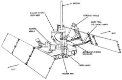Das CCIG war zur Bestimmung des extrem niedrigen Drucks der Mondatmosphäre gebaut. Es wurde seitlich (im Bild rechts) mit Kabeln an das SIDE angehängt, da sein starkes Magnetfeld am ursprünglich vorgesehenen Ort im Inneren zu Störungen geführt hätte. | ① | x | x | ||||||
