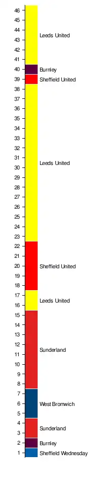 | Sheffield Wednesday | 0:1 | 2:2 | 0:2 | 1:1 | 1:2 | 4:2 | 0:1 | 0:2 | 1:1 | 2:1 | 2:2 | 2:0 | 0:1 | 4:0 | 1:1 | 1:1 | 1:1 | 0:1 | 2:0 | 1:2 | 0:0 | 2:6 | 3:2 | |