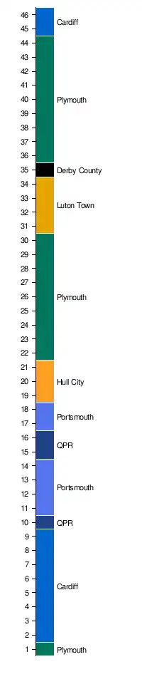 | Absteiger | Luton Town Plymouth Argyle Cardiff City |