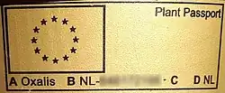 Beim EU-Pflanzenpass (bis 13. Dezember 2019 EG-Pflanzenpass) handelt es sich um ein Dokument, das beim Handel von Pflanzen und Pflanzenerzeugnissen, die im Anhang V der Richtlinie 2000/29/EG[1][2] aufgeführt sind, im Europäischen Binnenmarkt die Freiheit von Quarantäneschadorganismen dokumentiert und seit dem 1. Juni 1993 die bis dahin erforderlichen und jetzt nur noch für das Verbringen außerhalb der EU nötigen Pflanzengesundheitszeugnisse[3] ersetzt.[4][5]