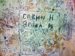 „Hier bei der Gestapo haben zwei Freunde gesessen aus dem Lager Messe seit dem 24.12.44, Askold Kurow und Gaidai Wladimir, jetzt ist schon der 3.2.45. 40 Leute wurden gehängt. Wir haben schon 43 Tage gesessen, das Verhör geht zu Ende, jetzt sind wir mit dem Galgen an der Reihe. Ich bitte diejenigen, die uns kennen, unseren Kameraden auszurichten, dass auch wir in diesen Folterkammern umgekommen sind.“