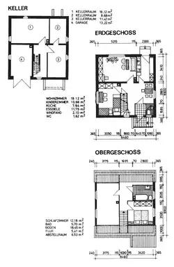 - EW 41 – teilunterkellert, ohne Windfang und mit Eingang von der Giebelseite. Im Grundriss mit separatem Esszimmer als Erweiterung zum Wohnzimmer.