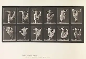 Durch Vermittlung des Malers Thomas Eakins und des Pferdeexperten Fairman Rogers konnte William Pepper, damaliger Kanzler der University of Pennsylvania, im August 1883 dafür gewonnen werden, weitere fotografische Bewegungsstudien zu finanzieren.[57] Unter Aufsicht eines wissenschaftlichen Beirats begann Muybridge im März 1884 auf dem Gelände des veterinärmedizinischen Instituts mit seinen Arbeiten. Die im trockenen Gelatineverfahren zwischen 1884 und 1885 aufgenommenen Bilder veröffentlichte Muybridge in seinem bis heute bekanntesten Werk mit dem Titel Animal Locomotion: An Electro-Photographic Investigation of Consecutive Phases of Animal Movements. Es enthält Bewegungsstudien verschiedener Tierarten sowie von nackten, halbnackten oder leicht verhüllten Kindern, Frauen und Männern.