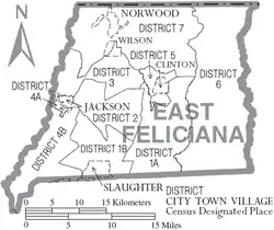 - ↑ East Feliciana Parish. In: Geographic Names Information System. United States Geological Survey, United States Department of the Interior, abgerufen am 9. März 2011 (englisch).
