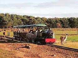 Bei der 1 km langen Eisenbahnsafari rund um den Park und durch die Tiergehege können die Fahrgäste die Tiere füttern, die dazu gerne zum Zug kommen.[2]