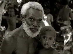 Bewohner der East New Britain Province: Großvater mit Enkel