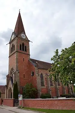 - Katholische Pfarrkirche Mariä Himmelfahrt, 1901/02 nach Plänen des Architekten Fr. Ruepp, Nürnberg, im neuromanisch Stil erbaut, am 23. November 1902 benediziert, seit 2003 zu Pfarrei Allersberg gehörend. Schiff 18 × 11 Meter, Spitzturm. 1903 neue Kanzel und neues Geläute (vier Glocken der Fa. Klaus in Heidingsfeld), 1904 Orgel der Firma Edenhofer in Deggendorf, 1909 Ausmalung durch den Berchinger Kirchenmaler Ambos, seit 1912 Turmuhr.[43][42] 2010 vier neue Glocken von Glockengießerei Albert Bachert, Karlsruhe.[44][45][46]