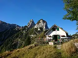 Hochkogelhaus, im Hintergrund Vorderer Rauenkogel (Klettersteig)