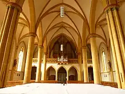 mehrfach (1896, 1910/11, 1935/36) von Steinmeyer umgebaut, 1919 von Steinmeyer um ein drittes Manual erweitert (III/57)