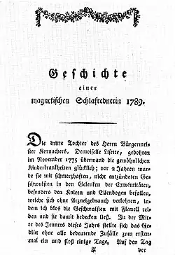 Wie schon in Anfängen der mit der Region Heilbronn durch seine einstige Amtszeit als Dekan in der nahen Stadt Weinsberg verbundene Prälat Friedrich Christoph Oetinger interessierte sich, doch in viel stärkerem Maße, der Tübinger Arzt Christian Friedrich (von) Reuß (1745–1813), Schüler und seit 1773 Schwiegersohn von Gmelins 1772 verstorbenem Lehrer Ferdinand Christoph Oetinger, für den animalischen ("tierischen") Magnetismus. Reuß hat 1778 zwei Bücher veröffentlicht, in denen er sorgfältig die Verbreitung der Magnetkuren von Maximilian Hell SJ und Franz Anton Mesmer dokumentiert.[3] Wie Prälat Oetinger hatte auch Reuß besondere Beziehungen zu Heilbronn. Er war ein Vetter von Jakob Gottlieb Reuß (1753 – 1839), dieser seit 1780 in Heilbronn Archivar beim Ritterkanton Kraichgau des Ritterkreises Schwaben der Reichsritterschaft, von 1795 bis 1807 dort Konsulent.[4]