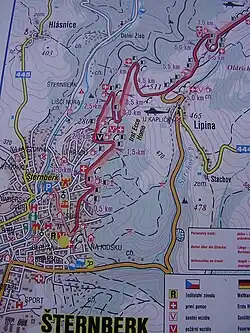 Die Strecke folgt der Sadova-Straße etwa 2 km durch den Ort, wobei langsame und mittelschnelle Kurven überwiegen. Dann folgt sie der Landesstraße 44423 zur Nationalstraße R 46 knapp oberhalb von Lipina, wo eine separate Anbindung, die dem normalen Verkehr nicht zur Verfügung steht, in die wesentlich breitere Nationalstraße R 46 einmündet. In diesem Streckenteil wechseln schnelle gerade Abschnitte mit Haarnadelkurven ab.
