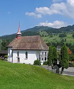 Der Weiler liegt auf einer schmalen Hangterrasse des Rossbergs. Hier soll sich im 17. Jahrhundert ein Grenzstreit abgespielt haben, der Meinrad Inglin zu seiner Novelle Tod des Schirmflickers angeregt hat. Diese Geschichte wurde unter dem Titel Das gefrorene Herz verfilmt.
