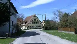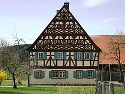 - Haus Nr. 17: ehemaliges Wohnstallhaus, zweigeschossiger Satteldachbau, mit Fachwerkobergeschoss und Fachwerkgiebel, 1705[23]