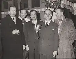 Otto Berger (Mitte) mit Branchen­kollegen in London (ca. 1960er Jahre)