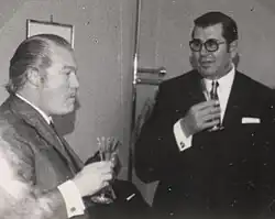 Otto Berger (links) beim Geschäftsjubiläum eines Hamburger Rauchwarenhändlers (1969)