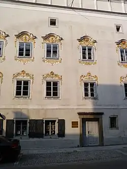 Das Gebäude befindet sich heute in der Prechtlerstraße 18 in Grieskirchen. Der Gebäudekomplex besteht aus zwei aneinander stoßenden Häusern, von denen das westliche, einstöckige Gebäude fünf Fenster mit einer Reihe darüber liegender Dachluken besitzt und das östliche, zweistöckige sieben Fenster mit einzelnen Dachluken zeigt. Die Fenster der ersten Stockwerke beider Gebäude liegen in einer Flucht. Die Fensterstöcke sind mit reichhaltigen, muschel- und blätterornamentierten Stuckaturen umrahmt. Die Fenster im zweiten Stockwerk des östlichen Traktes zeigen portraitähnliche Männer-, Frauen- und Kinderköpfe. Das östlichste Fenster besitzt einen mit Lorbeer bekränzten Männerkopf italienischen Stils. Nur über dem Fenster über dem granitenen Eingangsportal ist kein Menschenkopf angebracht. Im westlichen Trakt ist in der Fensterdekoration des 1., 2. und 5. Fensters je eine Rose zu sehen, ein deutlicher Hinweis auf den Rosenstein bzw. das Wappen der Vorbesitzer Posch und Stockhammer. Die Gebäude sind im italienischen Stil erbaut, was früher durch ein Flachdach noch besser zum Ausdruck kam. Einen entsprechenden Eindruck davon kann durch die Hinteransicht des Gebäudes erhalten, die als Hausabschluss eine Balustrade trägt. Als Erbauer beider Häuser kommen die Polheimer in Frage, von denen etliche Mitglieder an italienischen Universitäten studierten.