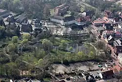 Am westlichen Rand des Gebietes, das den Mühlenteich umschließt, fließt die Hache, nördlich verläuft der Mühlendamm, östlich liegt ein Parkplatz und verläuft die B 6 (= Nienburger Straße) und südlich verläuft die Landesstraße L 333 (= Ernst-Boden-Straße).