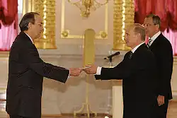 Am 27. Juli 2007 übergab Suárez Wladimir Putin sein Akkreditierungsschreiben im Moskauer Kreml[1].