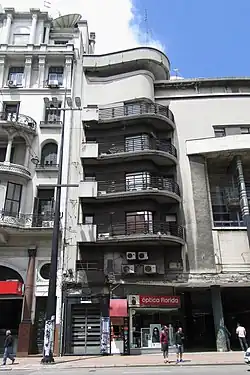 Das 1937 errichtete Gebäude befindet sich im Barrio Centro an der Avenida 18 de Julio 1216–1220 zwischen den Straßen Zelmar Michelini und Carlos Quijano. Für den Bau zeichneten die Architekten E. Carlomagno, A. Bouza und E. González Fruniz verantwortlich. In der ursprünglichen Konzeption diente es als Wohn-Appartementhaus und beherbergte eine Confitería. Mittlerweile hält es Büroräumlichkeiten, eine Einkaufspassage und kirchliche Räume vor. Das Gebäude wird der modernen Architektur mit ausdrucksvoller Linienführung zugeordnet.[1]