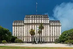 Der Ausbau und die Modernisierung des argentinischen Militärs in den 1920ern, dessen Etat sich in der Dekade verdreifacht hat, machte ein adäquates Hauptquartier notwendig. Seit dem 19. Jahrhundert war der Verteidigungsminister in der ehemaligen Münzpräge im Stadtteil Montserrat untergebracht.[1] Präsident Agustín Pedro Justo, ein ehemaliger General und früherer Kriegsminister, ordnete daher den Bau eines neuen Ministeriums an und beauftragte Carlos Pibernat, den Chef-Architekten des Hochbauamtes, mit einem Entwurf.[2]
