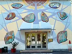 - 1956: Wohnhausanlage der Gemeinde Graz, Flurgasse; Keramikmosaik (8,00 m × 3,00 m)