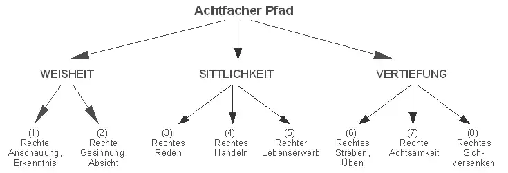 Der achtfache Pfad oder Weg setzt sich aus folgenden acht Teilen oder Gliedern zusammen: