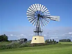 Anfang der 1920er Jahre begann die Firma Kletzsch mit der Produktion von Windturbinen. Sie stand damit in Konkurrenz zu den Vereinigten Windturbinenwerken (VWW) in Dresden.[41] Die Bedeutung, die man den Windturbinen beimaß, zeigt sich schon in der Reihenfolge der Abteilungen. Es gab nun eine Abteilung A: Windkraftanlagen und eine Abteilung B: Trockenanlagen und Spiritusbrennereien. Die Windturbinen der Marke Energie waren denen der VWW-Marke Herkules sehr ähnlich.[42] Sie besaßen, ebenso wie die von den VWW, eine Eclipse-Regelung nach Leonard H. Wheeler und hatten Raddurchmesser von 2,5 bis 12,5 m.[43] Die Unterschiede zur Herkules bestanden unter anderem in einer verbesserten Geradführung des Pumpengestänges und einer leicht zugänglichen und frostsicheren Turmlagerschmierung.[44] Man unterschied Pumpwindturbinen, die ausschließlich zum Pumpen von Wasser bestimmt waren, und Kraftwindturbinen, die Maschinen direkt antreiben konnten oder auch zur Erzeugung von Elektroenergie geeignet waren.[43]