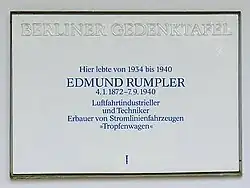 - ↑ Edmund Rumpler. ( des vom 4. Mai 2021 im Internet Archive) Info: Der Archivlink wurde automatisch eingesetzt und noch nicht geprüft. Bitte prüfe Original- und Archivlink gemäß Anleitung und entferne dann diesen Hinweis. gedenktafeln-in-berlin.de