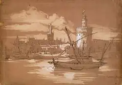 - Blick auf den Goldturm und die Kathedrale von Sevilla, 1845