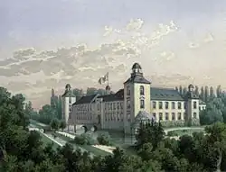 - ↑ Carl Heiner Beusch: Adlige Standespolitik im Vormärz: Johann Wilhelm Graf von Mirbach-Harff (1784–1848) (= Historia profana et ecclesiastica. Geschichte und Kirchengeschichte zwischen Mittelalter und Moderne, Band 3). Dissertation Universität Köln 1999, LIT, Münster 2001, ISBN 3-8258-4377-7, S. 472 (Google Books)