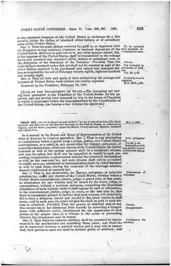 Unterzeichnet: Präsident Grover Cleveland; keine Unterschrift, aber auch kein Veto.