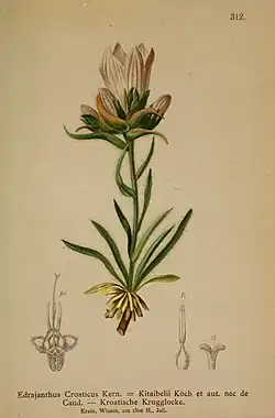 - Edraianthus dinaricus (A.Kern.) Wettst. (Syn.: Campanula dinarica A.Kern.): Sie ist ein Endemit des Mosor in Kroatien.[1]