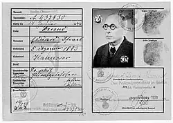 1938 jedoch wurde er nach den Novemberpogromen in das Schutzhaftlager Sachsenhausen verbracht und von dort mit der Weisung entlassen, sofort aus Deutschland auszureisen.[2] Mit der Hilfe von Heinrich Meyer gelang es ihm[3], nach Genf auszureisen, wo er auf eine Möglichkeit zur Ausreise in die USA wartete, die sich jedoch bis Kriegsende nicht ergab.