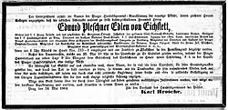 Pleschner wurde am 13. März 1857 mit Diplom vom 3. Juni 1857 in Wien in den österreichischen Adelsstand mit Namensergänzung „Edler von Eichstett“ erhoben.[4]