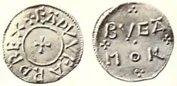 - ↑ Stewart Lyon: The coinage of Edward the Elder. In: N.J. Higham, D.H. Hill (Hrsg.): Edward the Elder 899-924. Routledge, London/New York 2001, ISBN 0-415-21497-1, S. 67–78.