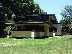 Das Haus ist auf einem verlängerten T-Grundriss erbaut und erstreckt sich über zwei Etagen. Das Wohnzimmer geht in eine Veranda über, die sich zur Straßenseite hin öffnet. Zu dem sehr großen Esszimmer gehören mehrere Reihen der für Wright-Häuser charakteristischen farbigen Glasfenster, die zum Teil auch als Oberlichter dienen. Die Gesamtkosten für das Haus waren mit $55.000 Dollar für die Zeit erheblich.