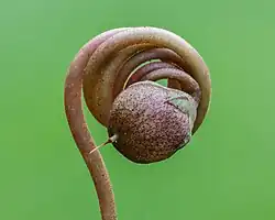 Unmittelbar nach der Blüte rollen sich die Blütenstandsschäfte von oben her zusammen. Die kugelförmigen Kapselfrüchte reifen auf dem Boden liegend und von den Blütenstielen umschlossen bis zum darauffolgenden Frühsommer. Die Samen keimen im Herbst. Sämlinge bringen im ersten Jahr ein einzelnes Blättchen hervor, das den Winter überdauert und etwa 5 mm breit ist.