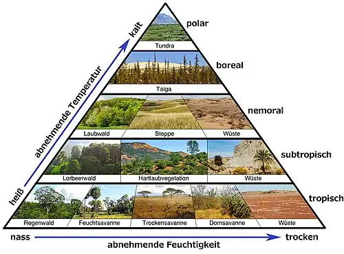 - ↑ vergleiche Josef Schmithüsen (Hrsg.): Atlas zur Biogeographie. Meyers großer physischer Weltatlas, Band 3, Bibliographisches Institut, Mannheim/Wien/Zürich 1976, ISBN 3-411-00303-0, S. 22–23, 42–43.