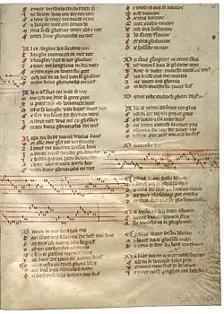 - ↑ Herman Brinkman, Ike de Loos: Het Gruuthuse-handschrift. Hs. Den Haag, Koninklijke Bibliotheek, 79 K 10 (= Middeleeuwse Verzamelhandschriften uit de Nederlanden. Band 13, Nr. 1). Band 1. Uitgeverij Verloren, Hilversum 2015, ISBN 978-90-8704-527-2, S. 41 (eingeschränkte Vorschau in der Google-Buchsuche).