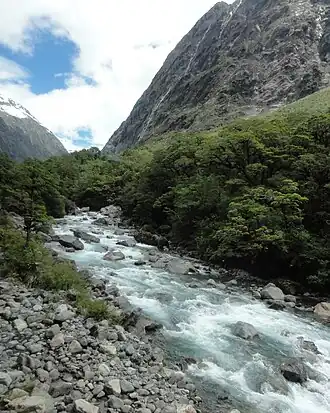 - Eglinton River East Branch, 24 km, Quelle: 44° 56′ 6″ S, 168° 7′ 43″ O