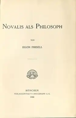 - Novalis als Philosoph. Bruckmann, München 1904.