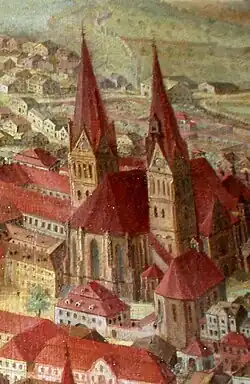 1296 war die Johanniskirche, eine kleine romanische Anlage mit Apsis (so bei Ausgrabungen 1920/21 festgestellt) wieder hergestellt. Obwohl es das Patrozinium nahelegen könnte, war die Johanniskirche keine Taufkirche; das Baptisterium wurde im Zuge der Domgrabungen der 1970er Jahre innerhalb des Domes als kleine Rundkirche nachgewiesen.